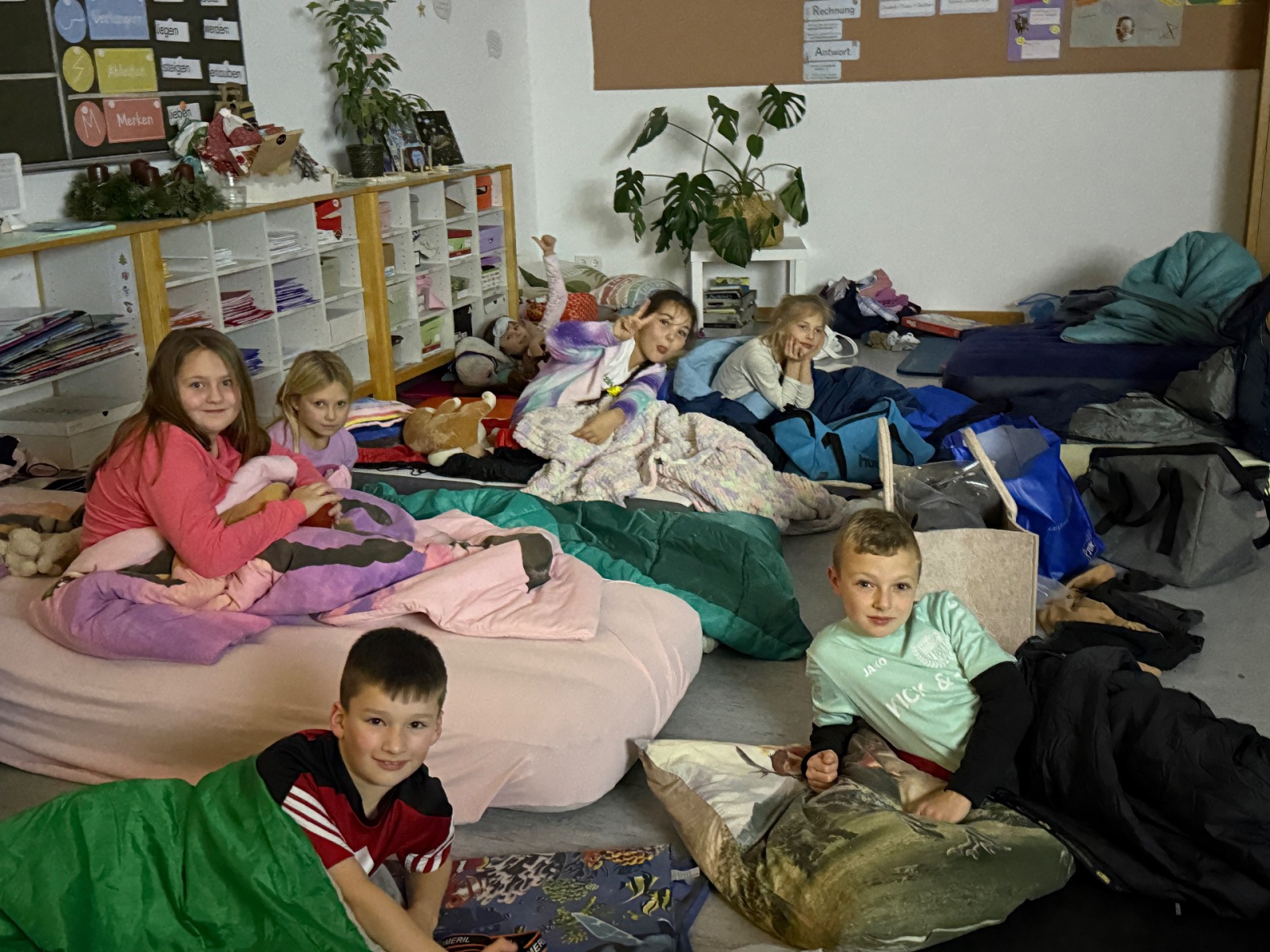 Aufregung und Vorfreude waren Tage davor natürlich schon enorm. Was für ein spannendes Erlebnis, einmal nachts im Schulhaus zu sein und das Klassenzimmer in einen großen Schlafsaal verwandeln zu dürfen!