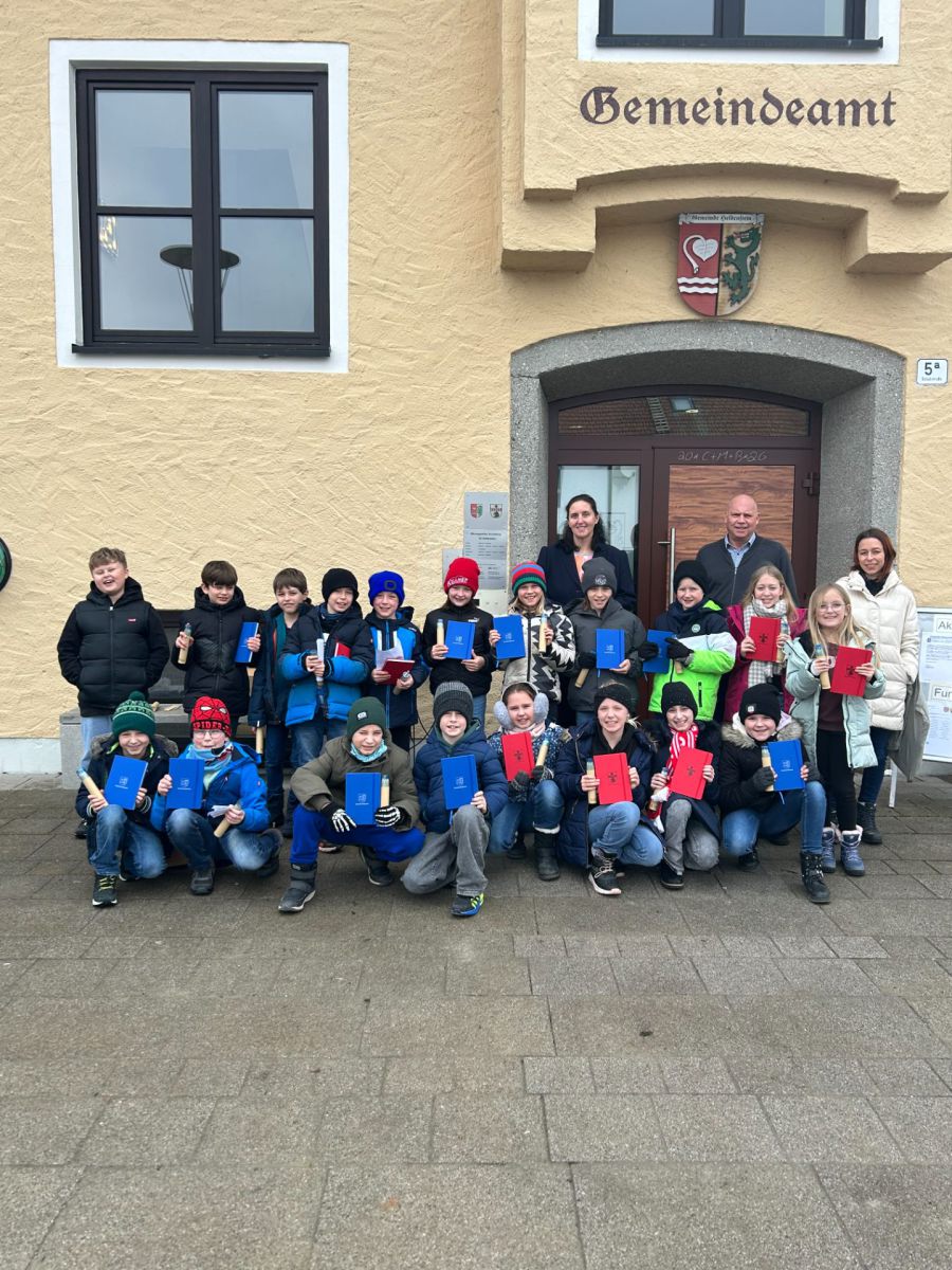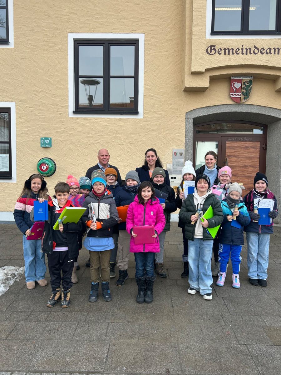 Auch heuer führte unsere Viertklässler ein kurzer Unterrichtsgang auf die andere Seite der Schulstraße, um sich im Rathaus über die Organisation der Gemeinden Heldenstein und Rattenkirchen zu informieren. Bürgermeisterin Antonia Hansmeier und Bürgermeister Rainer Greilmeier berichteten gemeinsam über ihre Aufgaben und öffneten die Türen zu den Ämtern, wo die Mitarbeitenden geduldig Rede und Antwort standen. Die Schülerinnen und Schüler brachten bereits fundiertes Vorwissen aus dem Heimat- und Sachunterricht mit und stellten beeindruckt fest, dass die Gemeindeoberhäupter nahezu jedes Kind mit Namen und Adresse kannten. Manch einer konnte sich auch daran erinnern, wie seine Familie einmal mit einem konkreten Anliegen, etwa einem Bauantrag, die Gemeinde aufgesucht hatte. Besonders viele neugierige Fragen musste das Fundamt beantworten. Anschließend durften die jungen Besucher im Sitzungssaal auf den Stühlen der Gemeinderäte Platz nehmen und den Tag bei Brezen und Getränken ausklingen lassen. Mit großem Interesse stießen sie bei den Gemeinderäten auf bekannte Namen und erfuhren, welche Entscheidungen in diesem Saal getroffen werden. Zum Abschied erhielt jedes Schulkind ein kleines Präsent in Form eines Notizbuchs mit Gemeindewappen. Wir bedanken uns bei allen Mitwirkenden ganz herzlich für diesen lehrreichen Einblick!