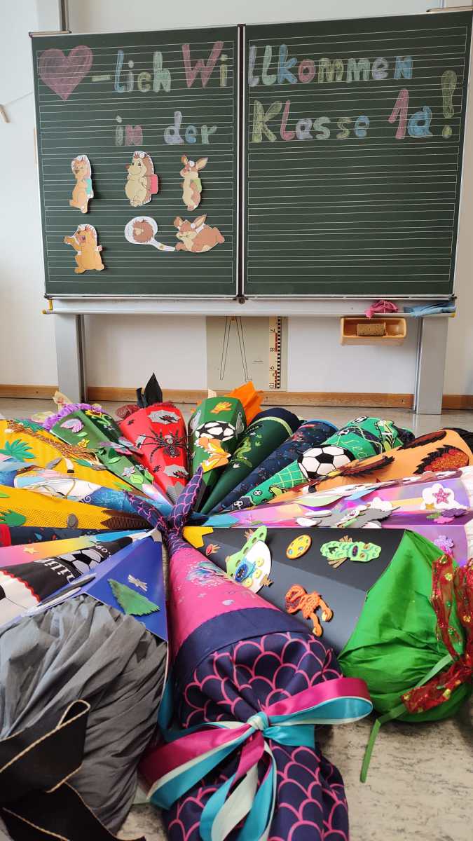 Der Einzug in das Schulhaus und die drei Klassenzimmer wurde für die Kinder und deren Eltern mit viel Applaus durch ein Spalier der Klassen 2 bis 4 geleitet. Auch die Eltern durften zunächst mit ins Klassenzimmer, bevor sie dann in der Aula durch den Elternbeirat mit leckerem Kuchen und Kaffee sowie kühlen Getränken bestens versorgt wurden.